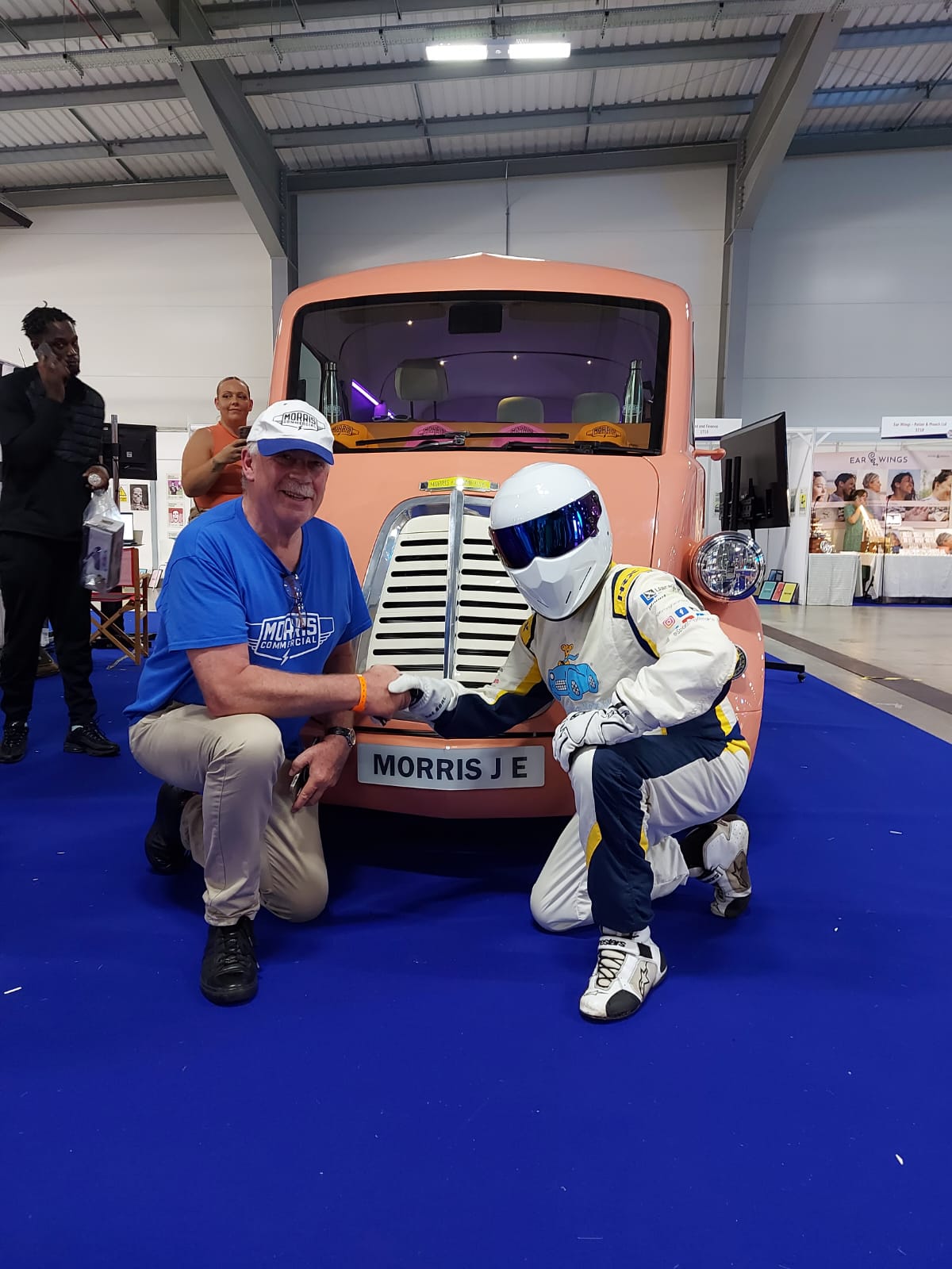 Several famous people visited the stand to see the Morris JE, including The Stig from Top Gear; here he is with our very own John Killick from Morris Commercial.