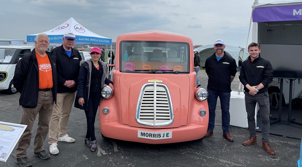Our preproduction prototype was a real crowd-puller at Fully Charged. The event, the brainchild of Robert Llewellyn, ran from 28th to 30th April. Visitors flocked to see the Morris JE van – Morris Commercial’s gorgeous incarnation of an all-electric light commercial vehicle, in the flesh. There was simply no doubt that the retro styling, the stunning design, and characterful good looks struck a chord with fleet managers, independent business owners and private individuals alike. Everyone could visualise the impact and recognition that a JE van finished in their logos and colours would create – a mobile advert for their business!